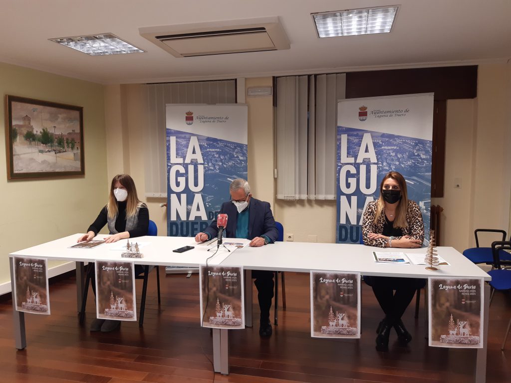 El Alcalde de Laguna de Duero Román Rodríguez de Castro, la Concejal de Cultura,Lucía Castro y la Concejal del Área de Bienestar Social y Turismo,Estela Crespo, presentan el programa de Navidad 2020 y Reyes 2021.