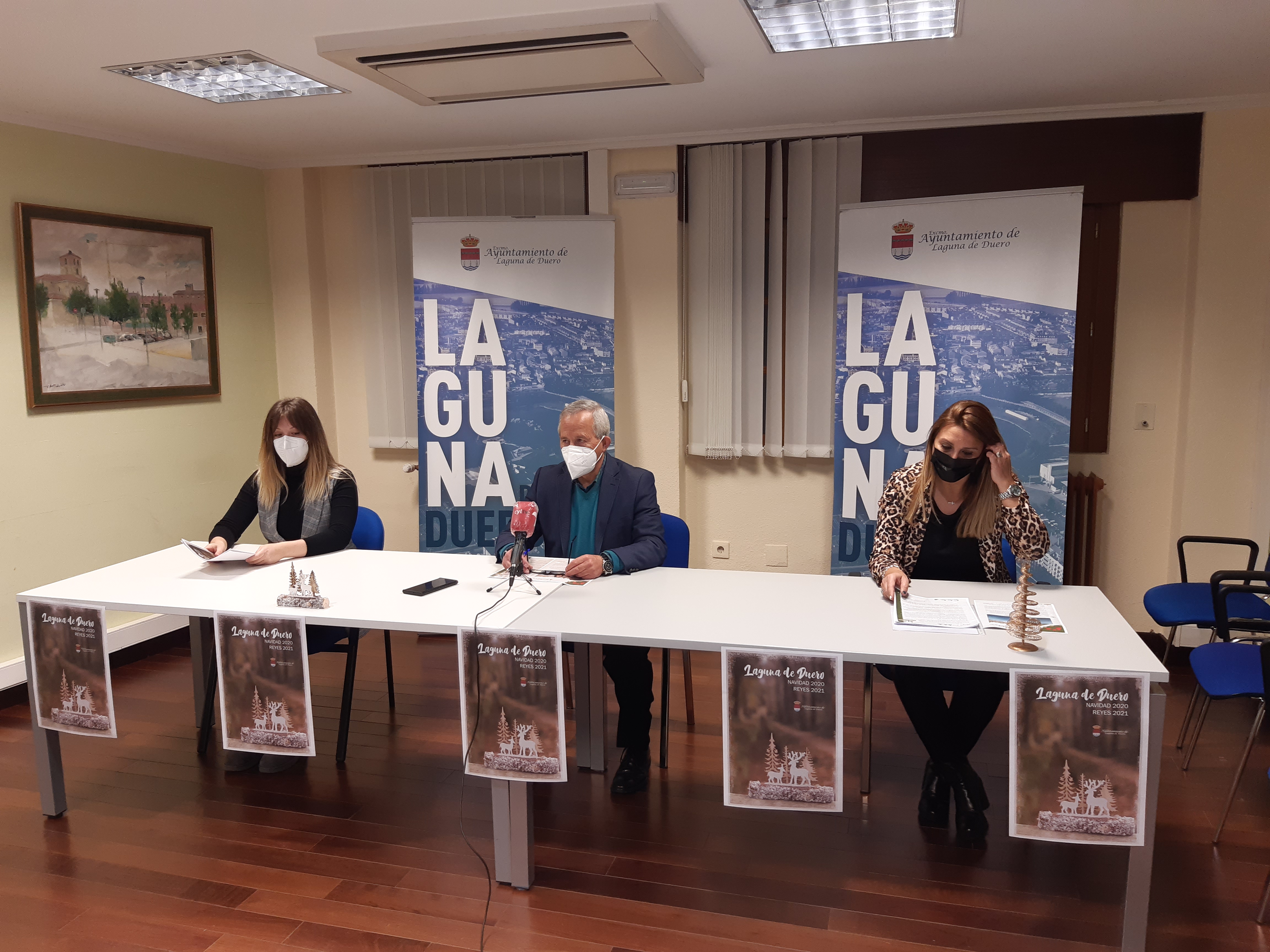 El Alcalde de Laguna de Duero Román Rodríguez de Castro, la Concejal de Cultura,Lucía Castro y la Concejal del Área de Bienestar Social y Turismo,Estela Crespo, presentan el programa de Navidad 2020 y Reyes 2021.