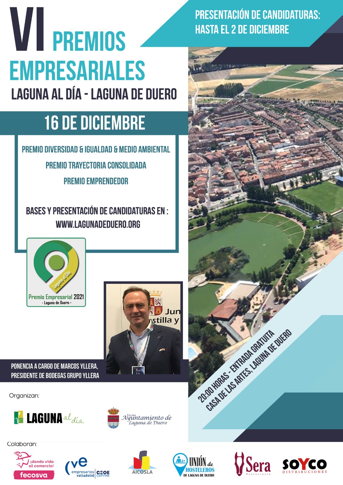 Por sexto año consecutivo, las empresas laguneras volverán a ser reconocidas a través de los V Premios Empresariales Laguna al Día – Laguna de Duero, una iniciativa organizada por el medio de comunicación Laguna al Día y el Ayuntamiento. Con el objetivo de poner el foco en las empresas y entidades del municipio y de potenciar elentorno económico local, especialmente en las circunstancias actuales, la iniciativainvita a presentar su candidatura a todos los empresarios autónomos laguneros. Una vez más, se hará entrega en esta edición de tres galardones, con los que se pretende dar reconocimiento a las mejores prácticas y dinámicas de mantenimiento y creación del sector empresarial, sumando iniciativas que impulsan, día a día, un crecimiento socioeconómico en Laguna de Duero. Existirán, de nuevo, tres premios: el Premio Emprendedor; el Premio a la Trayectoria Consolidada y el Premio Diversidad &