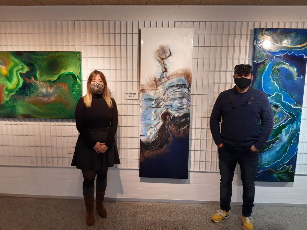 La Concejal de Cultura, Lucía Castro y el autor Alberto Del Campo retoman la exposición de resina liquida suspendida por la crisis del Covid-19.