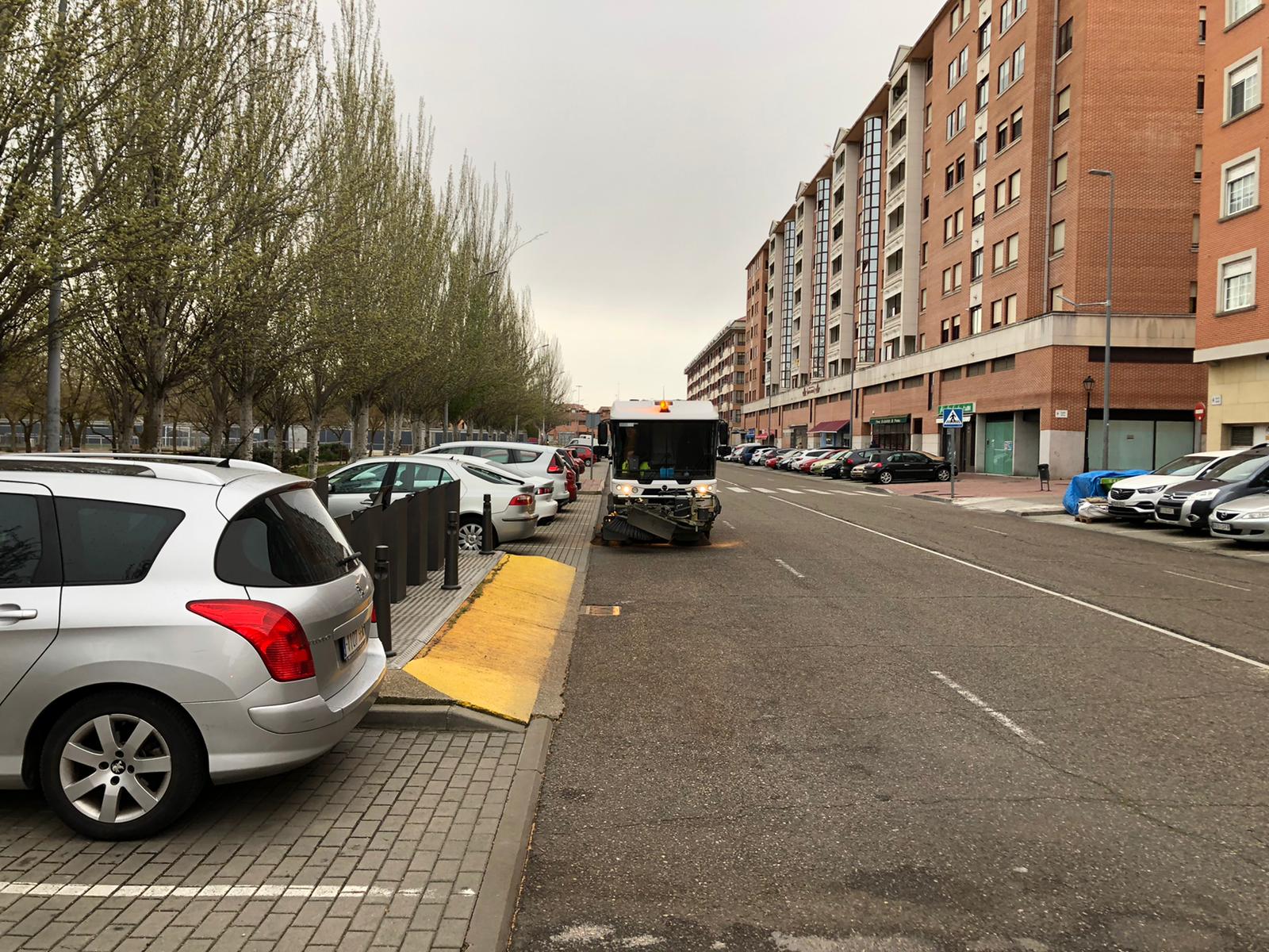 La barredora municipal realiza igualmente el trabajo de desinfección y limpieza por todas las calles de la localidad.