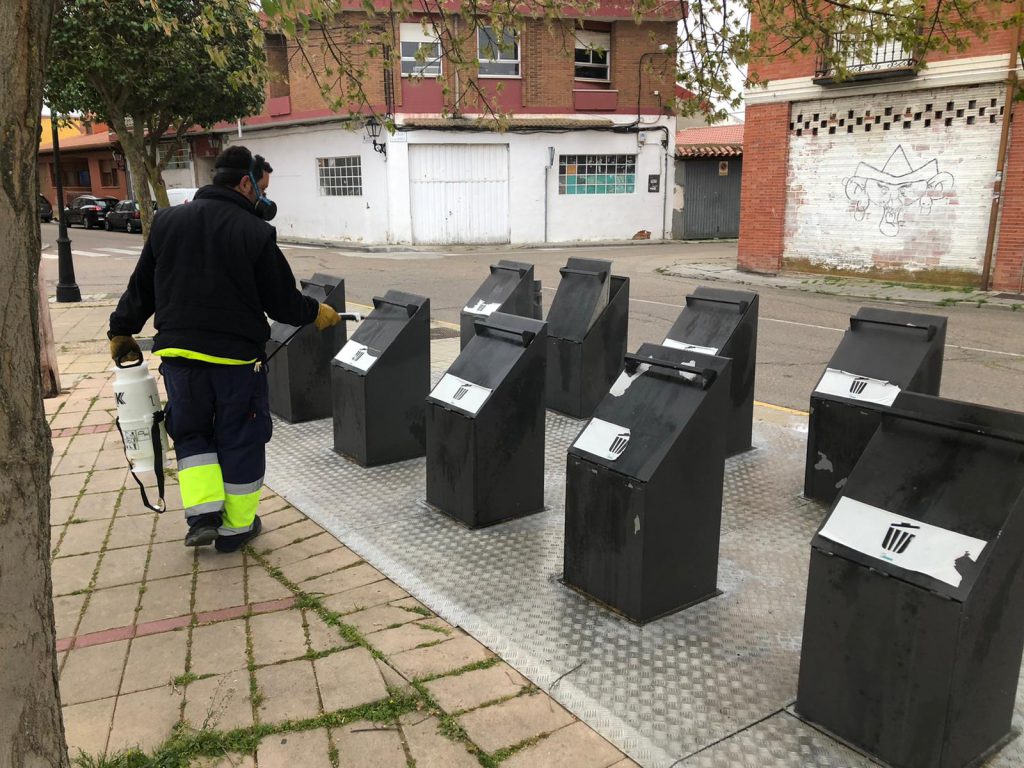 Desde primera hora de hoy lunes, el equipo de limpieza municipal realizan los trabajos propios de desinfección en calles, contenedores, asas etc…