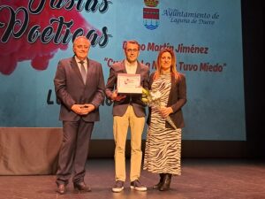 Tras ellos, vino la entrega de premios comenzando por el de LV Premio de Poesía, en que Diego Martín Jiménez resultó ganador con su obra ‘Cuando la noche tuvo miedo’, alzándose con un premio de 2.000 euros y una placa. En la categoría local de este premio fue Casiano Maroto el premiado que se llevó la placa y los 300 euros por su poema ‘Mi madre’.