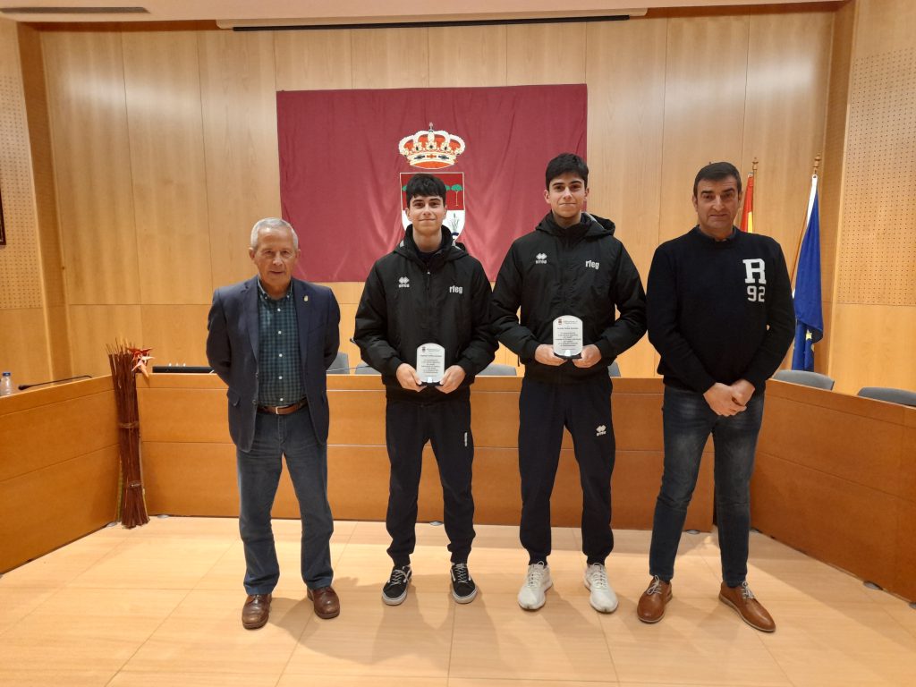 El alcalde de Laguna de Duero, Román Rodríguez de Castro y el concejal de Deportes, Fernando Vara, entregan las placas conmemorativas a sendos deportistas, por los éxitos cosechados en distintas disciplinas.