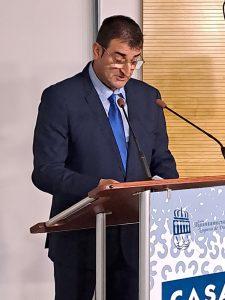 Carlos Gil, representante de la Residencia El Villar, fue el encargado de recoger el premio a la Trayectoria Empresarial tras las tres décadas de servicio y dedicación al cuidado de los más mayores por parte del centro. Este galardón fue entregado por Fernando Vara, concejal de Desarrollo Local.