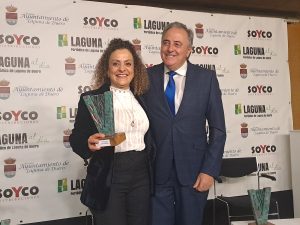 María Ángeles del Canto recibió de manos de Avelino Álvarez, alcalde de la localidad, el Premio Igualdad, Medio Ambiente y Diversidad por su empresa Frutas Laguna. Su trabajo con productos de temporada y cercanía y su implicación en eventos y actividades de promoción del ocio saludable la hizo merecedora para el jurado de esta edición de este premio.