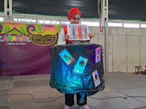 Si hay un segmento de la población que disfruta con el Carnaval ese es, sin duda, el de menor edad. Poder convertirse por un rato en alguien diferente mientras se disfruta de música, bailes, manualidades y un ambiente festivo en familia es sin duda, un gran plan. Hoy, el Polideportivo La Nava se ha llenado de personajes que correteaban y bailaban al son de “Ona y su fiesta de Carnaval”. Una tarta de chuches, una original parrilla,una pecera, una reina del Carnaval al más puro estilo brasileño, mazorcas de maíz o una vidente fueron algunas de las propuestas ganadoras en la categoría de disfraz individual. Por grupos destacó un dragón al “estilo chino”, unos andarines, piezas de puzzles o un grupo de matrioskas. Todos recibieron su reconocimiento llenos de ilusión al final de una fiesta de Carnaval en la que gozaron pequeños y mayores, que en muchos casos, acudieron disfrazados también.
