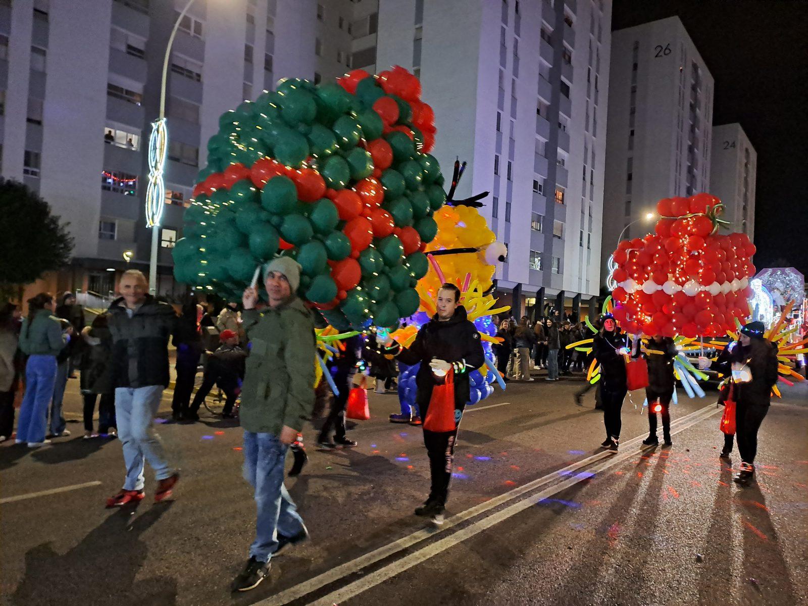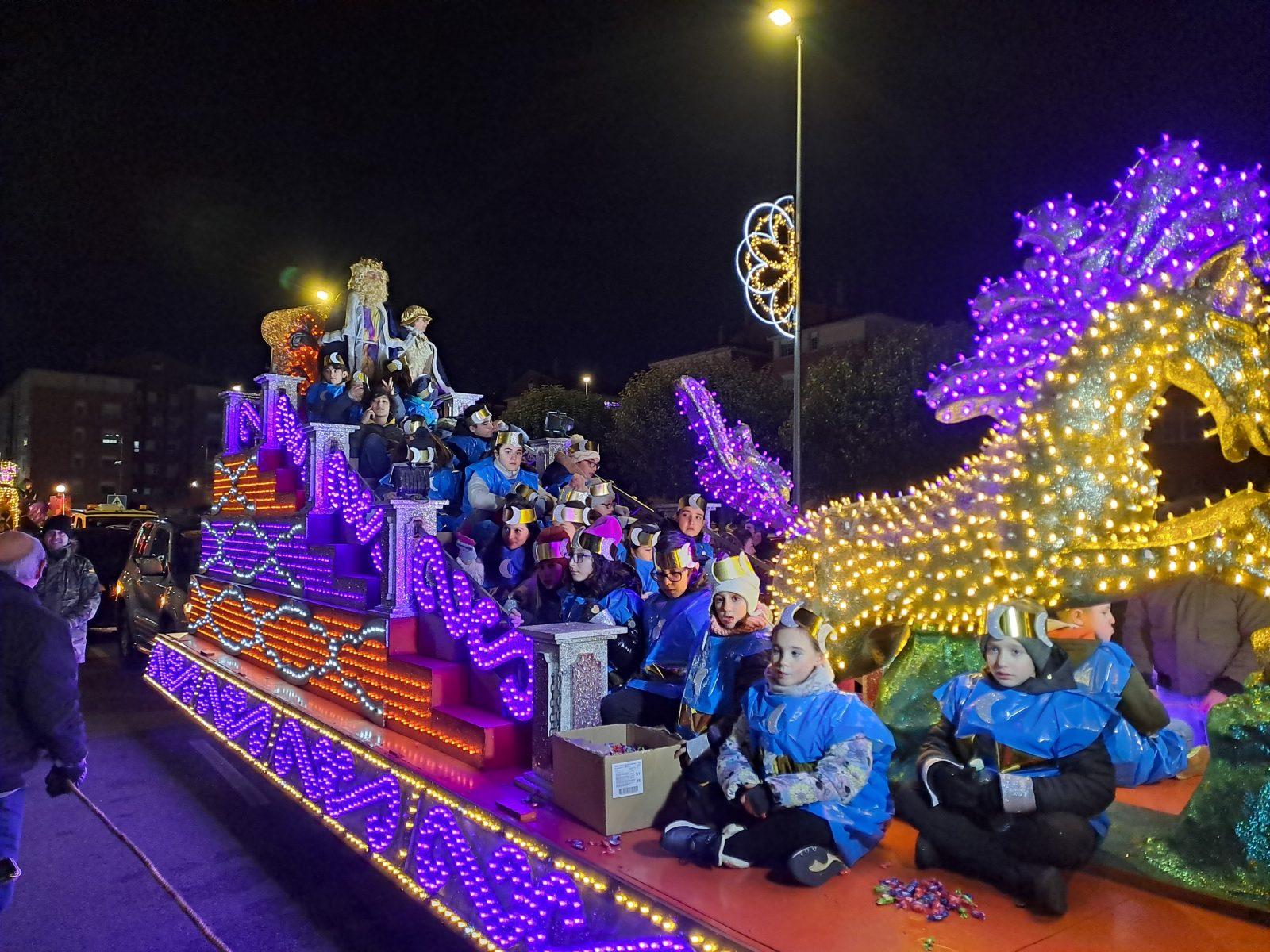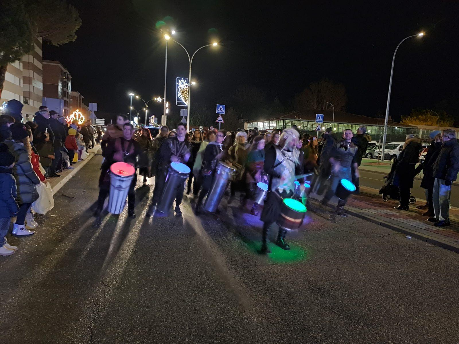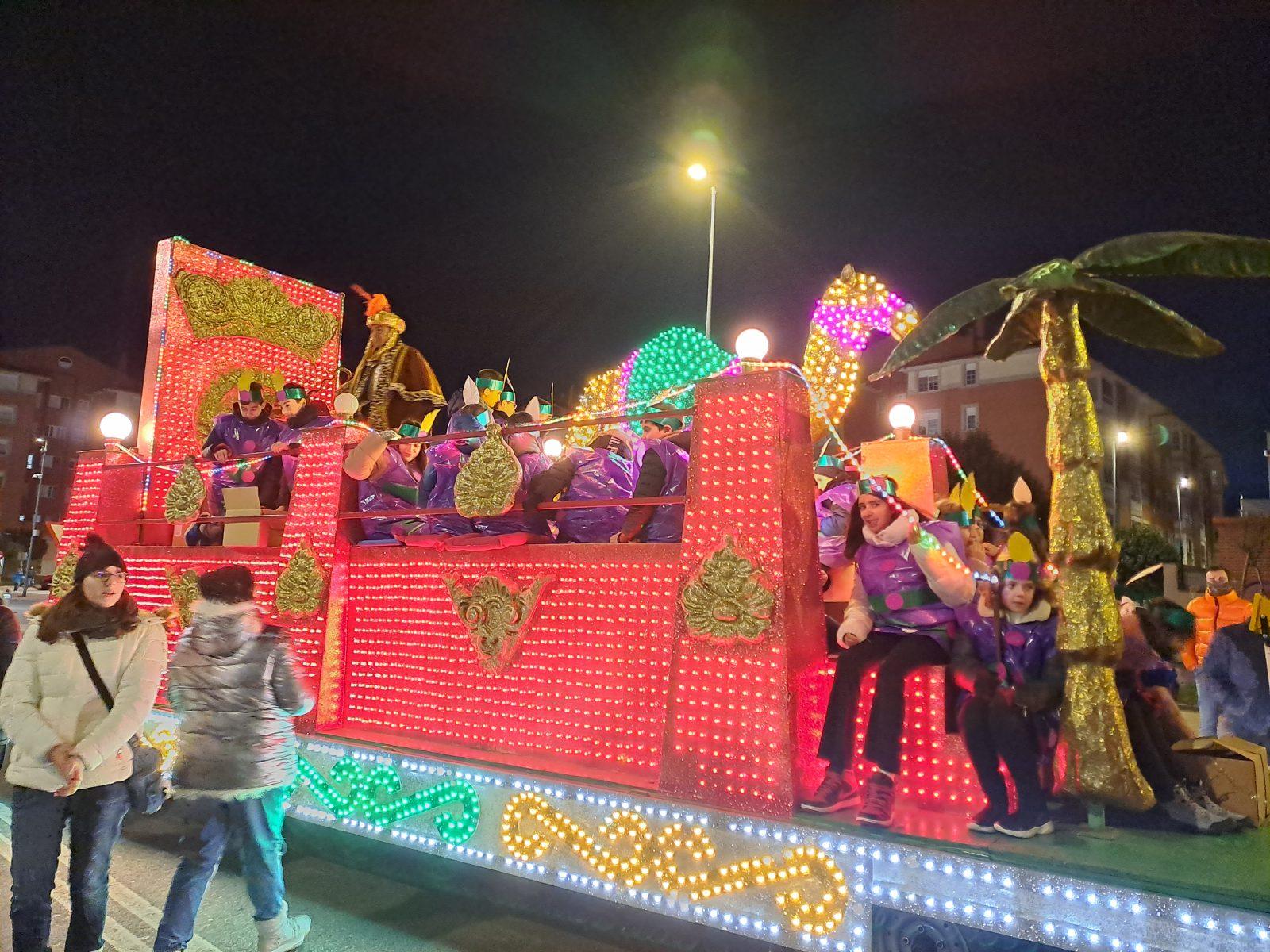 Pasaban algunos minutos de las siete de la tarde cuando SS.MM. los Reyes Magos de Oriente salían, entre la sorpresa de algunos niños, de La Casa de las Artes para dirigirse cada uno a su carroza. Además de ellos, lo hacían los 75 niños y niñas de la localidad que les han acompañado en su recorrido arrojando cerca de dos toneladas de caramelos sin gluten, 25 con cada rey mago. Además de las tres carrozas de sus majestades, antes de éstas, encabezaba una que representaba al conocido Belén Viviente de la localidad, con personajes del mismo y otra cargada de regalos que corría a cargo de la Peña La Resistencia. Antes de todo el cortejo una alegre batucada abría paso y anunciaba la llegada de tan esperado momento. Entre carroza y carroza variadas animaciones a cargo de la Asociación de Peñas y de voluntarios del pueblo, circenses a cargo de la compañía El Estaribel, figuras fantásticas y personajes gigantes elaborados con globos, todo organizado desde la Concejalía de Fiestas con Estela Crespo a la cabeza.