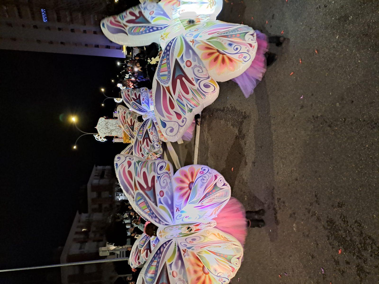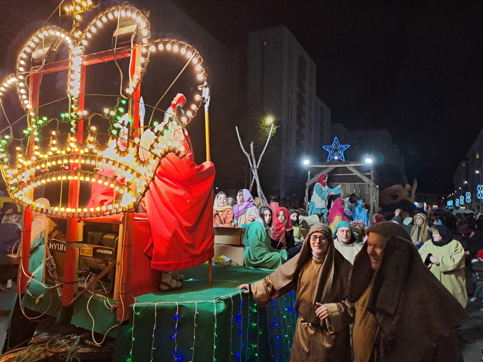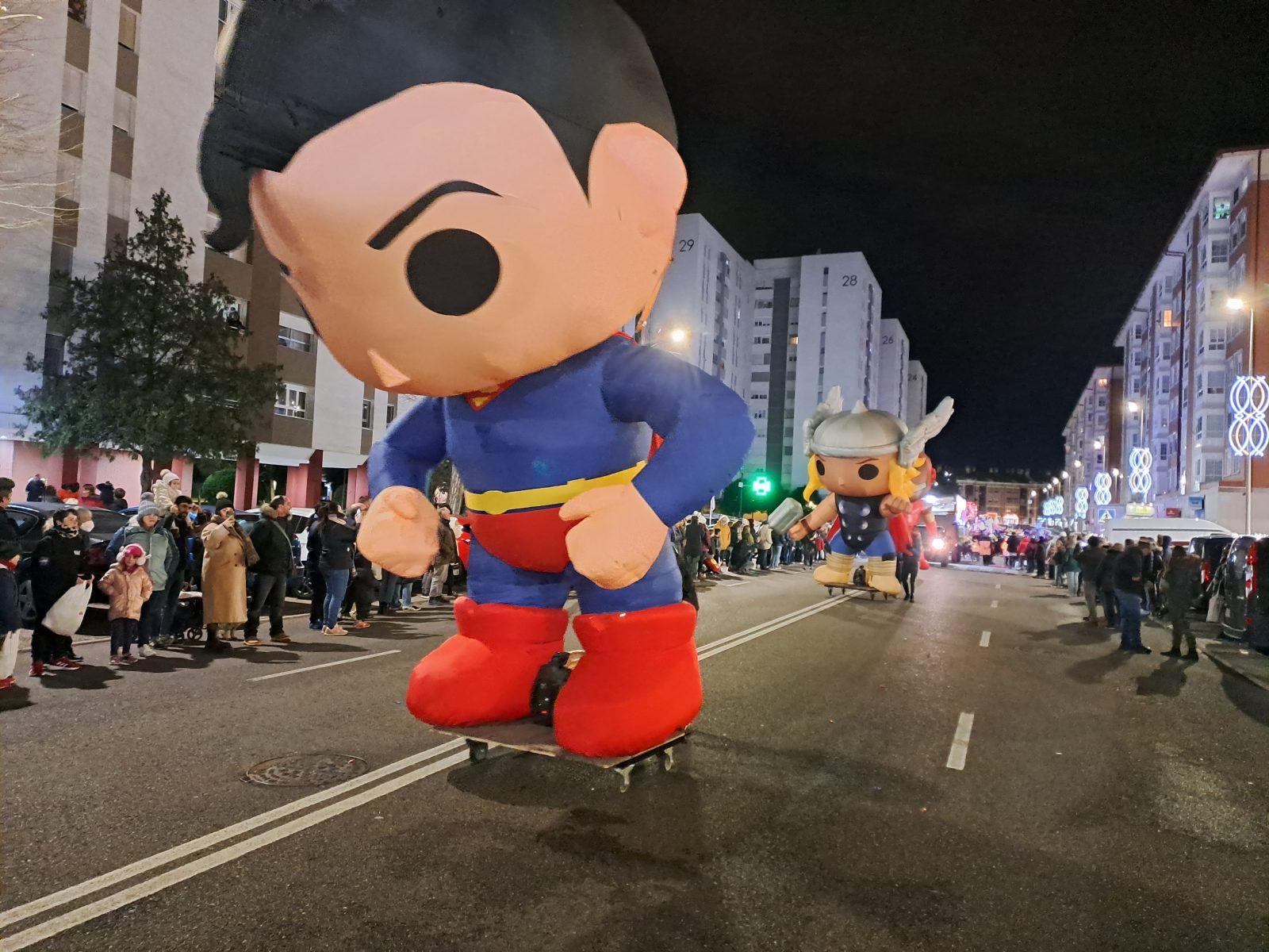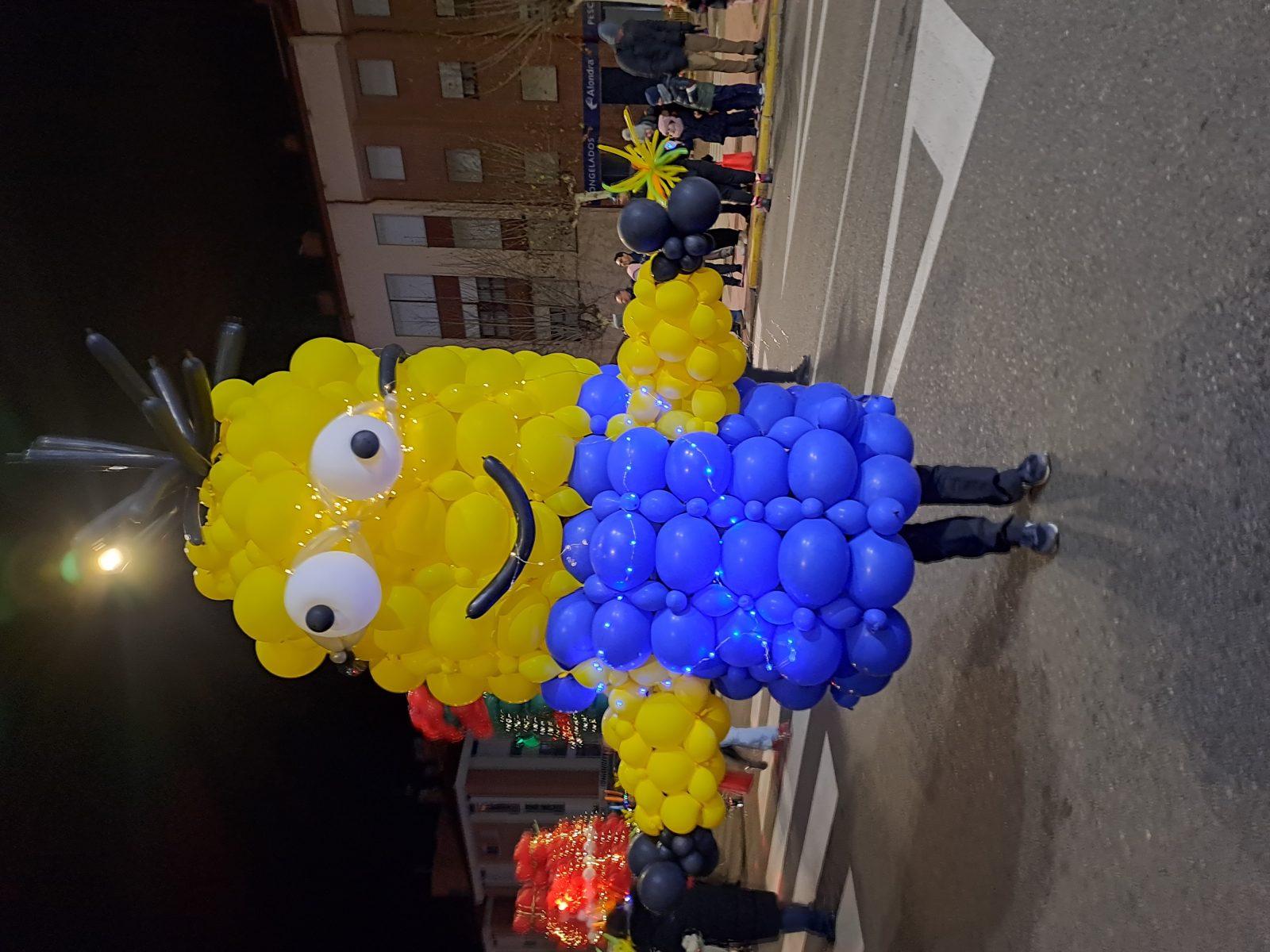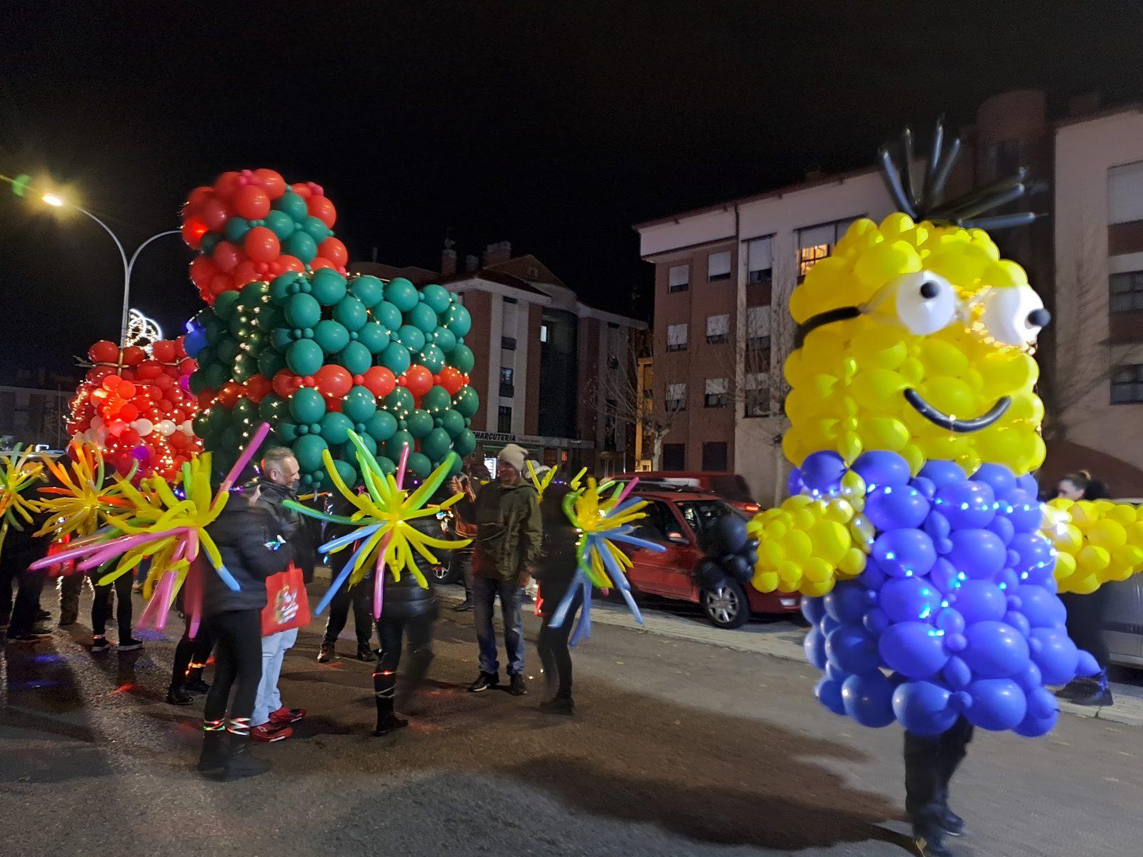Pasaban algunos minutos de las siete de la tarde cuando SS.MM. los Reyes Magos de Oriente salían, entre la sorpresa de algunos niños, de La Casa de las Artes para dirigirse cada uno a su carroza. Además de ellos, lo hacían los 75 niños y niñas de la localidad que les han acompañado en su recorrido arrojando cerca de dos toneladas de caramelos sin gluten, 25 con cada rey mago. Además de las tres carrozas de sus majestades, antes de éstas, encabezaba una que representaba al conocido Belén Viviente de la localidad, con personajes del mismo y otra cargada de regalos que corría a cargo de la Peña La Resistencia. Antes de todo el cortejo una alegre batucada abría paso y anunciaba la llegada de tan esperado momento. Entre carroza y carroza variadas animaciones a cargo de la Asociación de Peñas y de voluntarios del pueblo, circenses a cargo de la compañía El Estaribel, figuras fantásticas y personajes gigantes elaborados con globos, todo organizado desde la Concejalía de Fiestas con Estela Crespo a la cabeza.