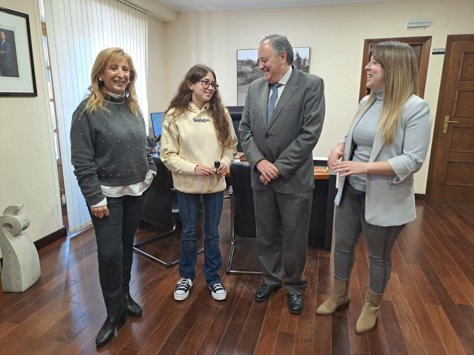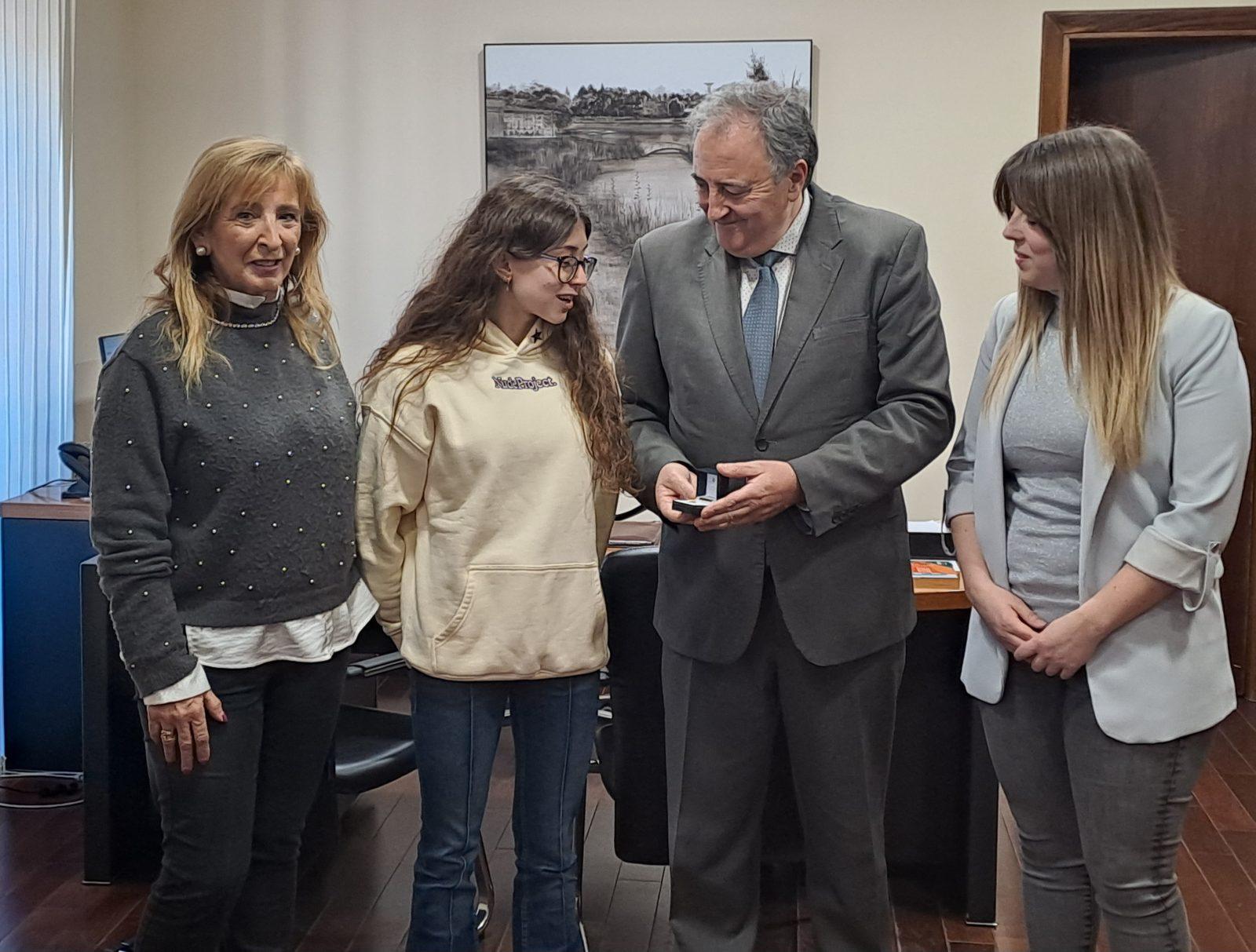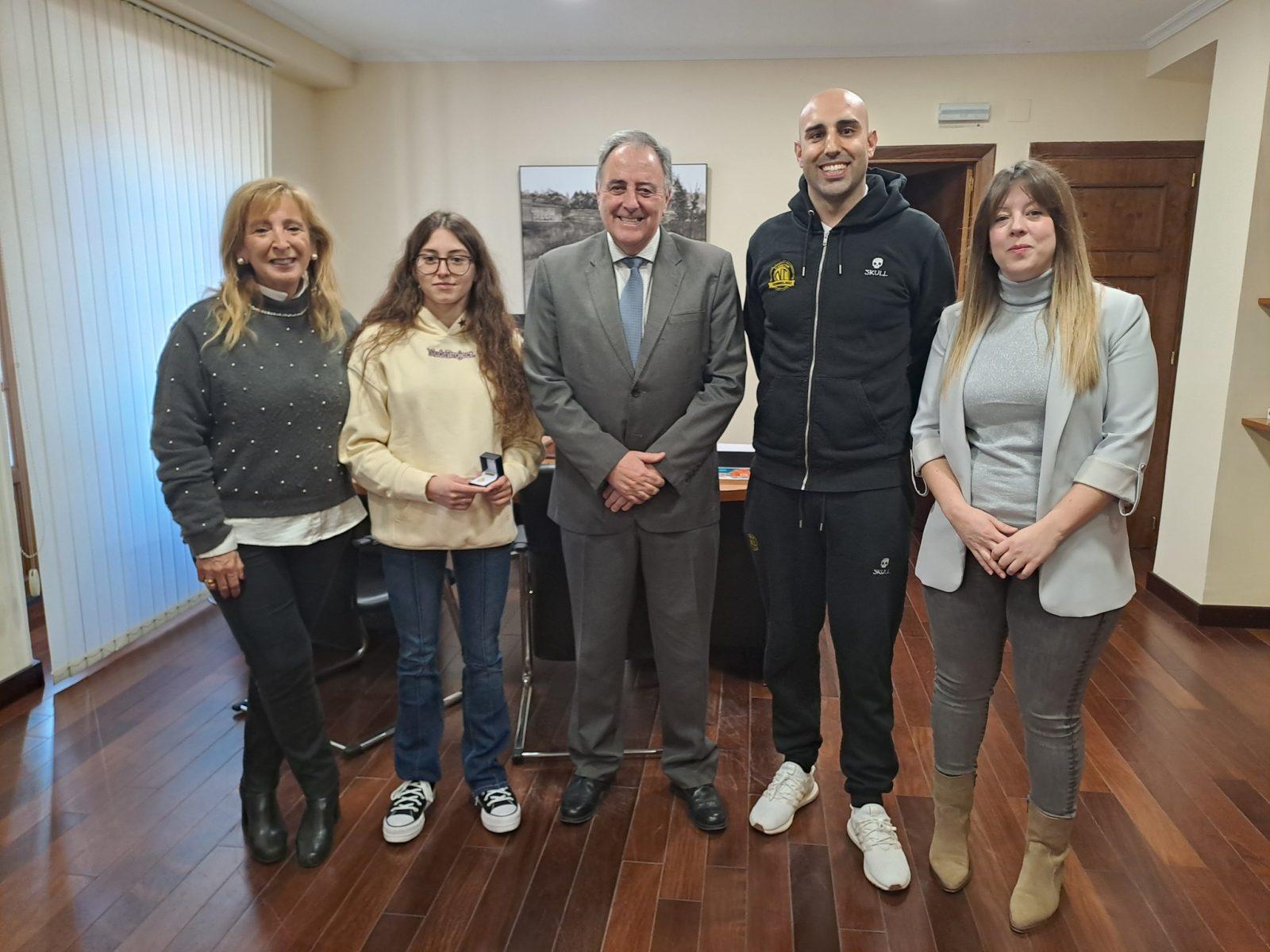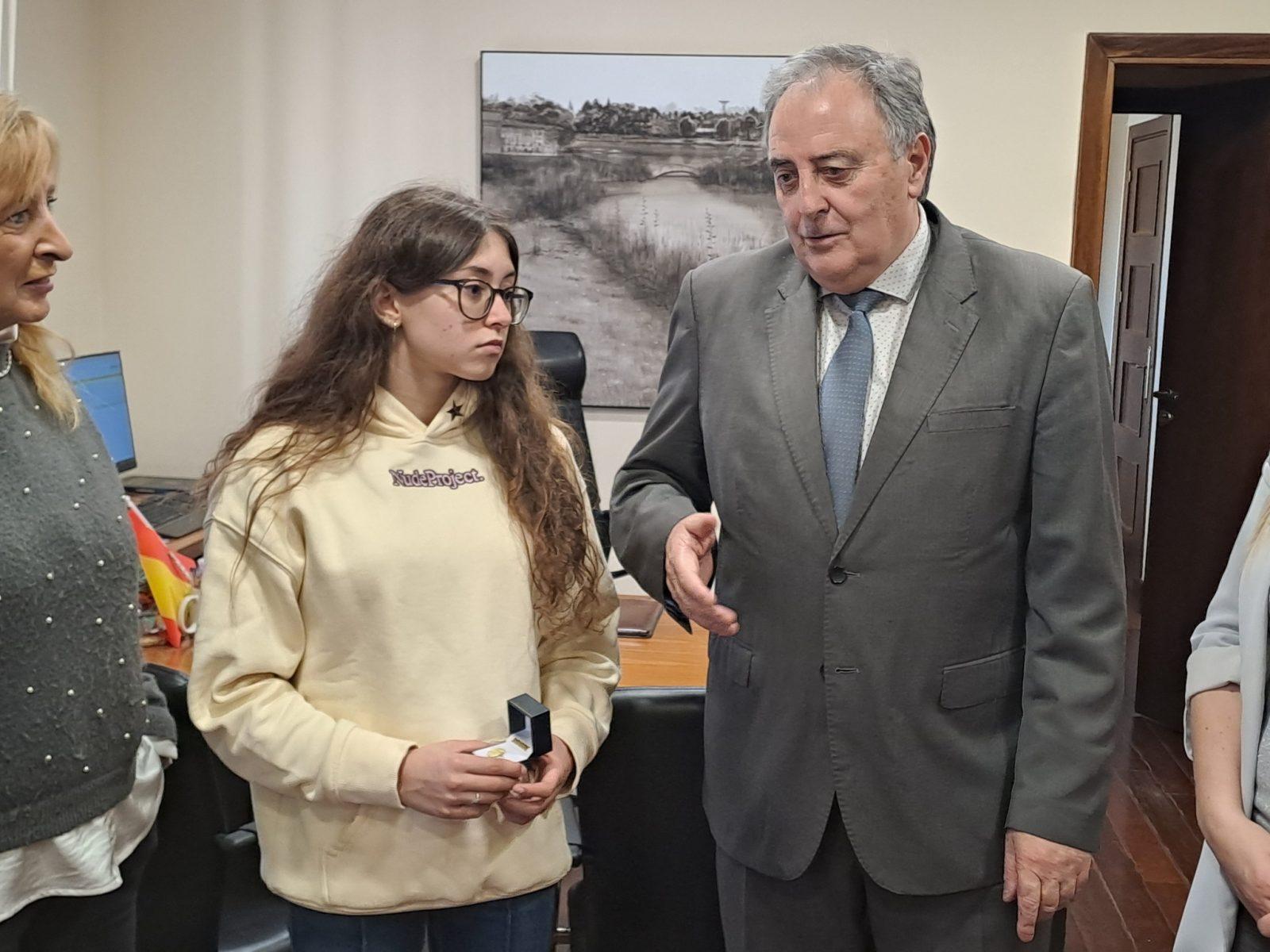 El despacho de Alcaldía ha sido el lugar esta mañana en el que se ha recibido a la nadadora lagunera del C.D. Torrelago Wellness Nayara Pineda después de sus últimos éxitos deportivos, en especial su participación en el Mundial de Natación Absoluto, llegando a clasificarse para semifinales. La joven, de tan solo 16 años, acudía a la recepción en la que ejercía como anfitrión el alcalde, Avelino Álvarez, junto con las ediles Lucía Castro e Isabel Pérez. Allí, tras conversar sobre la complicación de compaginar una carrera deportiva como la suya con los estudios y sobre sus últimos éxitos deportivos, se le ha hecho entrega de una insignia de oro con el escudo del municipio por parte del primer edil, como muestra del reconocimiento por parte del Consistorio de su esfuerzo y perseverancia. Nayara Pineda sigue entrenando en nuestra localidad a pesar de haber sido tentada a irse a hacerlo a centros de alto rendimiento. Su fuerte vínculo con Laguna de Duero es, según palabras del alcalde cuando le hacía entrega del pin, “un orgullo para todos sus vecinos, que esperan seguir viéndola crecer como deportista unida a nuestra tierra”.