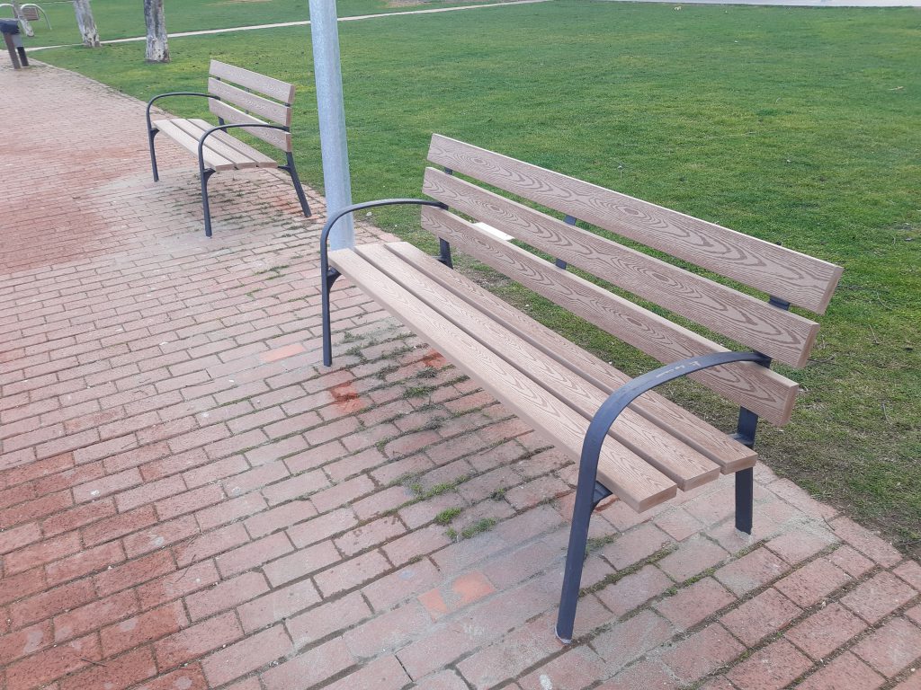 Los bancos a instalar se han dotado de listones de madera técnica que aunan el confort de la madera con un bajo mantenimiento y gran durabilidad. Se consigue de esta manera una mejora de la ergonomía de los bancos y un menor coste de mantenimiento para el municipio.