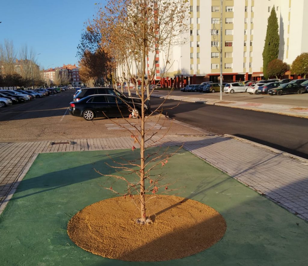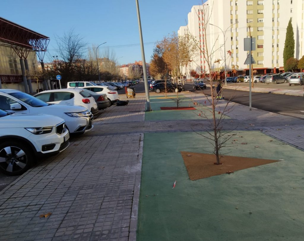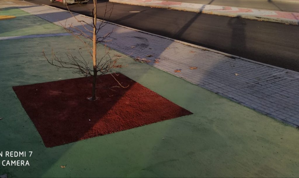 Se ha aprovechado para adecuar también la señalización horizontal con baldosas abotonadas como exige la ley. Con esta actuación, se han plantado, cuatro liquidámbar con alcorques de hormigón drenante con distintas formas para hacer estéticamente más visual el entorno.