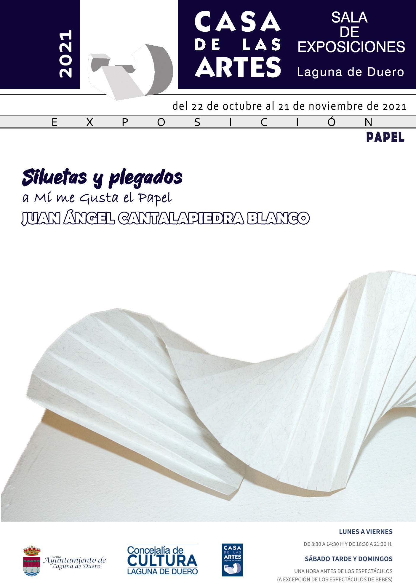 El Ayuntamiento de Laguna de Duero desde la Concejalía de cultura presentan una nueva muestra en la Sala de Exposiciones de la Casa de las Artes, del autor Vallisoletano Juan ángel Cantalapiedra, bajo el título Siluetas y Plegados “A mí me gusta el papel”. Todo comenzó desde su infancia y hasta ahora no ha parado “empecé en el mundo del papel con el origami, de manos de mi madre que nos hacía barquitos de papel y aguaderas con las servilletas de la chocolatería, luego debido a una lesión en una vértebra, tuve que quedarme un mes en la cama y decidí hacer una pajarita de papel cada hora que pasaba allí (un total de 720)”declara el autor.