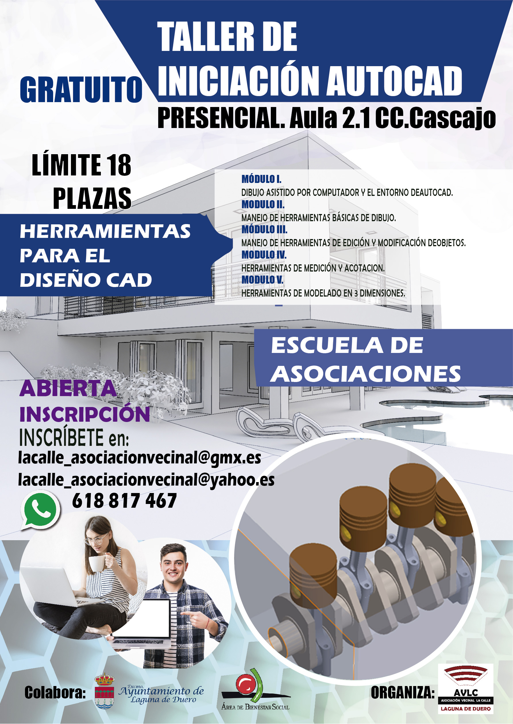 La asociación Vecinal La Calle dentro de su programa Escuela de Asociaciones, presenta el curso de iniciación autocad ,un taller Básico y gratuito, a través del cual podrás trabajar en la creación de dibujos de dos y tres dimensiones, pues AutoCAD es un software para diseño que es conocido a nivel internacional debido a que cuenta con amplias capacidades de edición, por lo que ha venido adquiriendo distintas funcionalidades que lo han llevado a ser el mejor software que permite hacer posible el dibujo digital de planos de edificios así como también recrear imágenes en 3D.