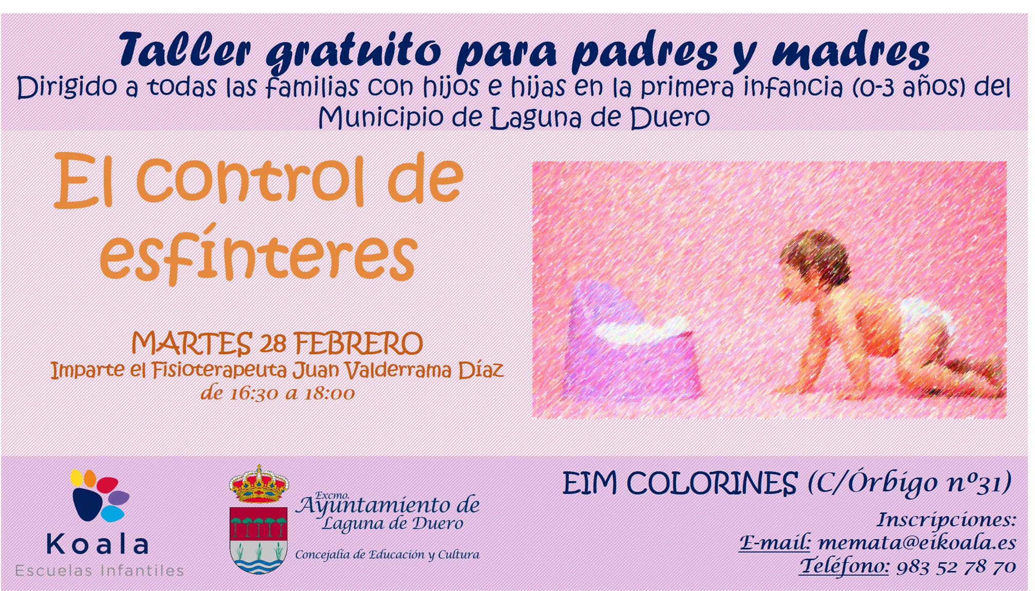 - “El Control de Esfínteres” el día 28 de febrero de 2023, en la Escuela Infantil Municipal de Laguna de Duero Colorines: De 16:30 a 18:00h
