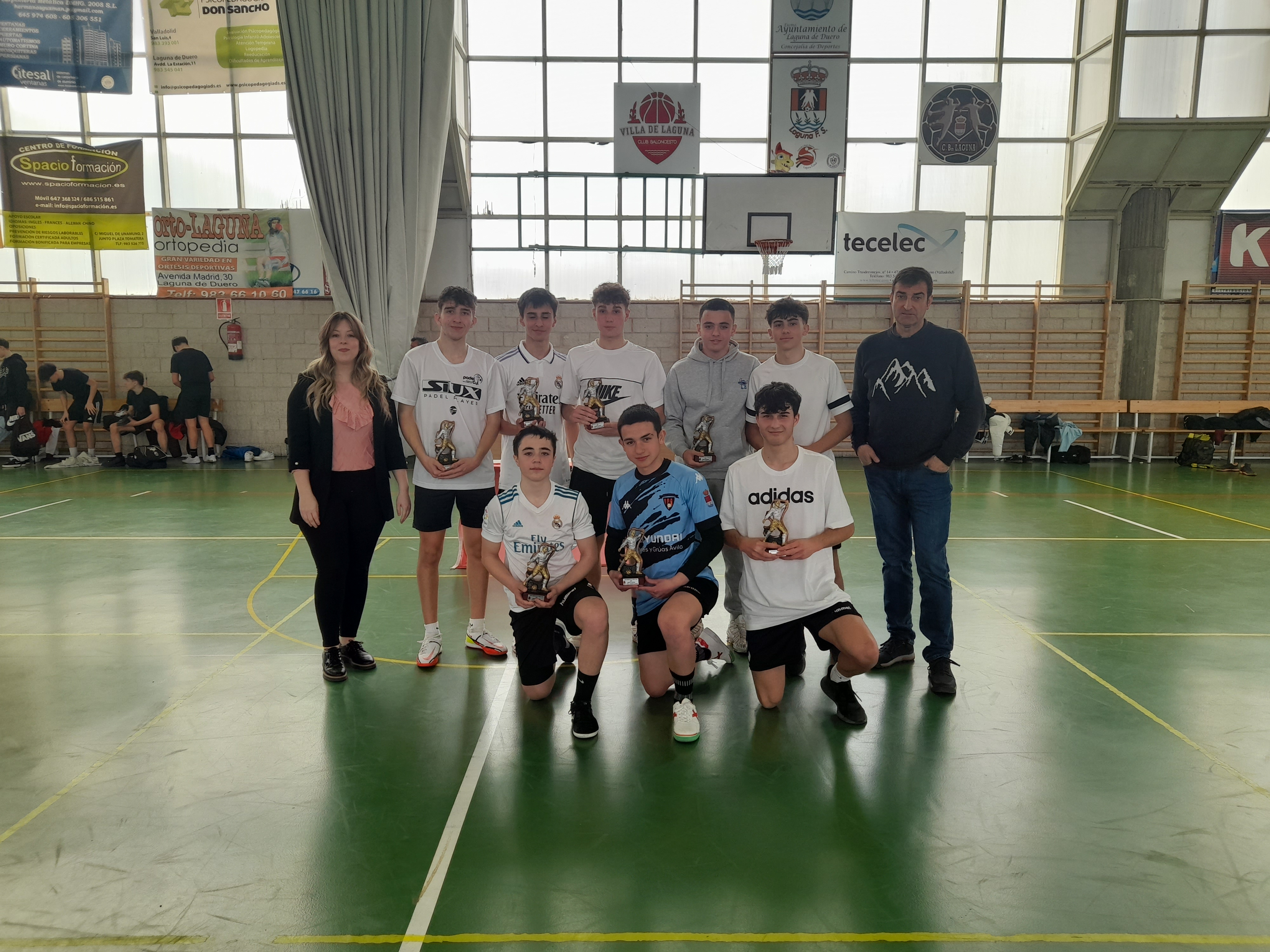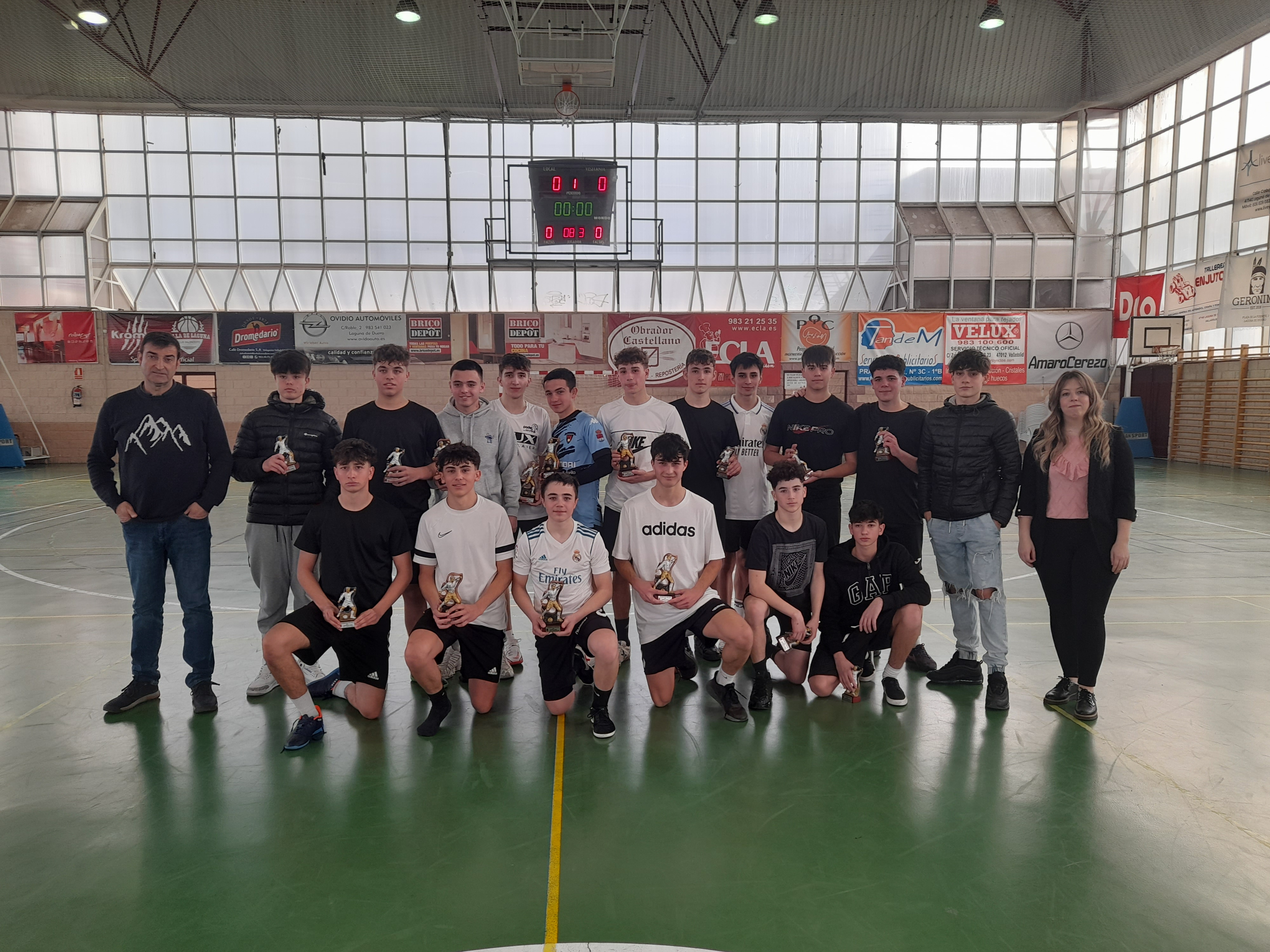 La concejal de Cultura, Lucía Castro y el concejal de Deportes, Fernando Vara, entregaron los galardones durante la mañana de hoy a los últimos finalistas del campeonato de fútbol sala, celebrado en el Polideportivo Municipal de Laguna de Duero.