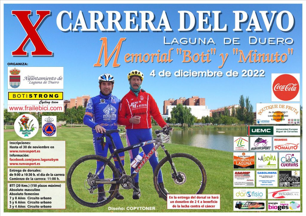 El Ayuntamiento de Laguna de Duero y Botistrong organizan la X Carrera del Pavo Laguna de Duero memorial a “Boti” y “Minuto” que se celebrará el próximo domingo 4 de diciembre 2022.