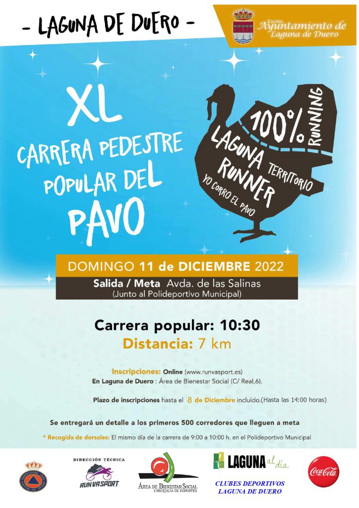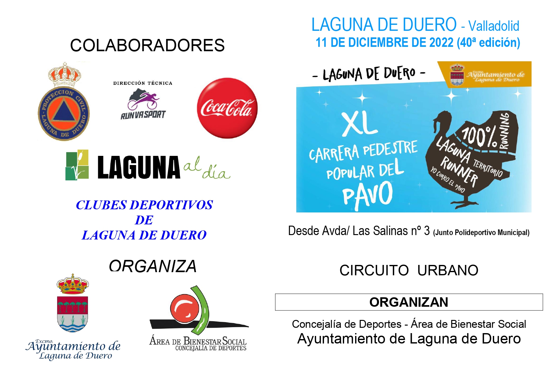 El Ayuntamiento de Laguna de Duero desde la Concejalía de Deportes presenta la XL Carrera Pedestre Popular del Pavo 2022 que se celebrará el próximo Domingo 11 de diciembre .