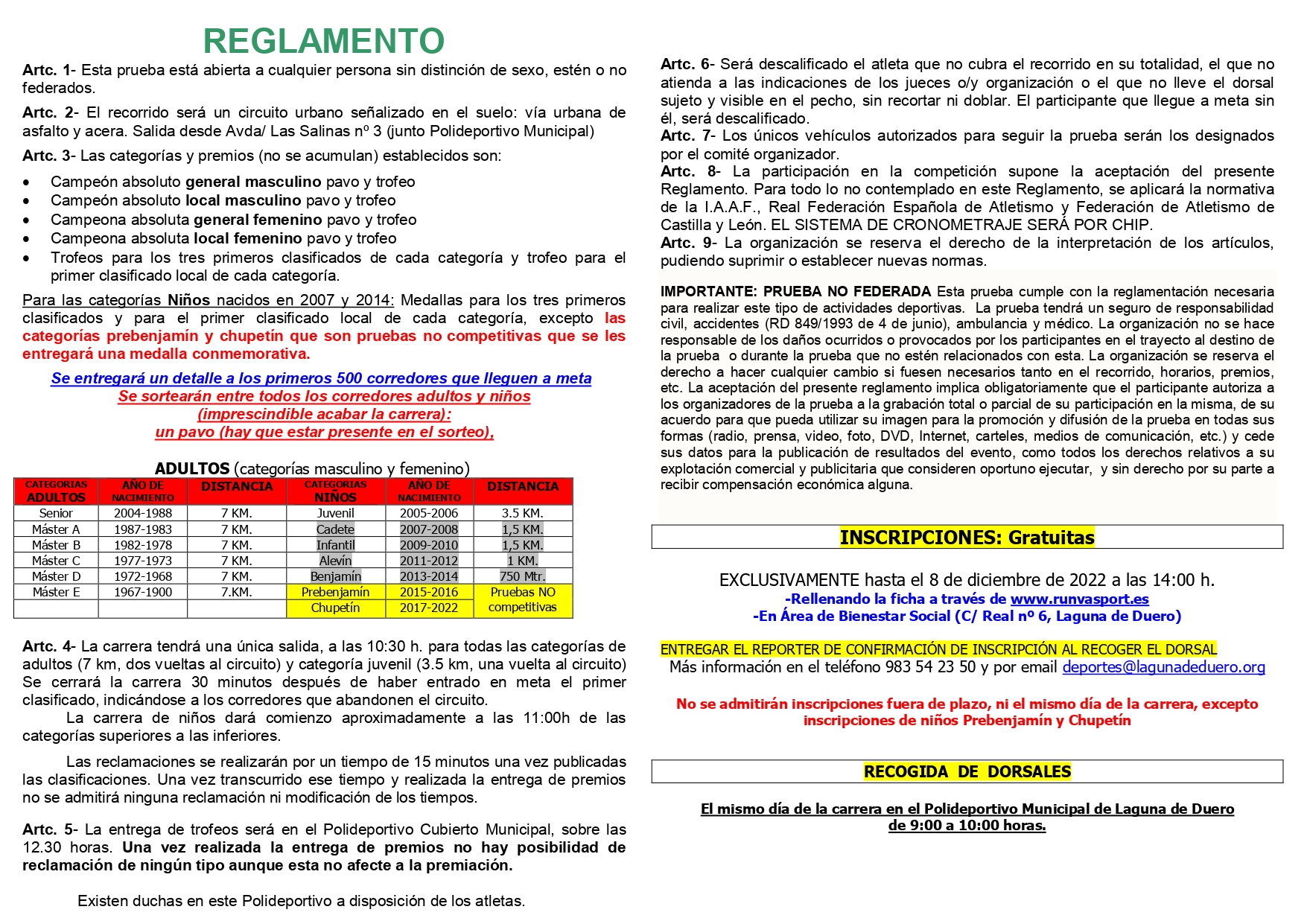 El Ayuntamiento de Laguna de Duero desde la Concejalía de Deportes presenta la XL Carrera Pedestre Popular del Pavo 2022 que se celebrará el próximo Domingo 11 de diciembre .