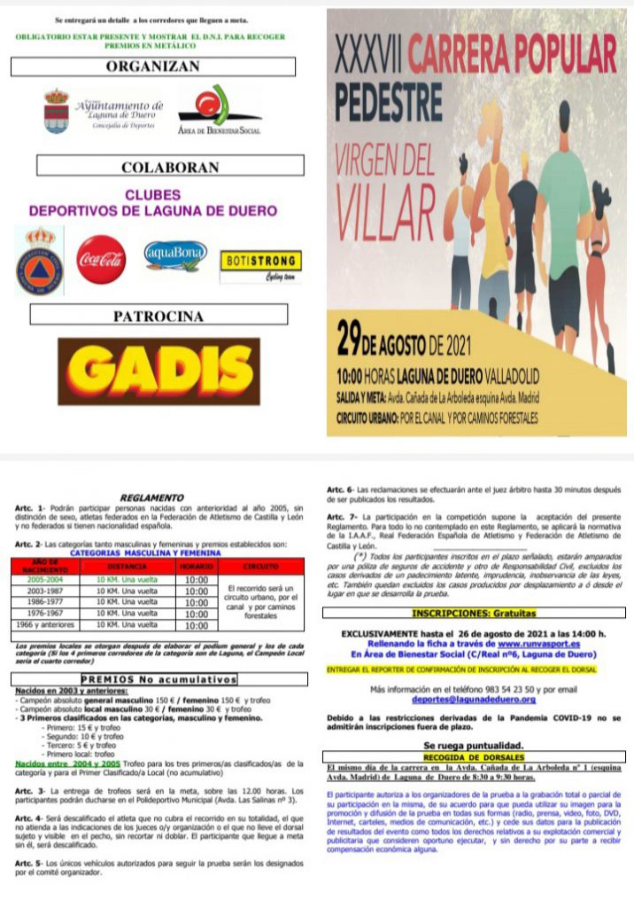 El Ayuntamiento de Laguna de Duero desde el Área de Bienestar Social organiza la XXVII Carrera Popular Pedestre 2021, el evento se celebrará el próximo domingo 29 de agosto a las 10:00 am.